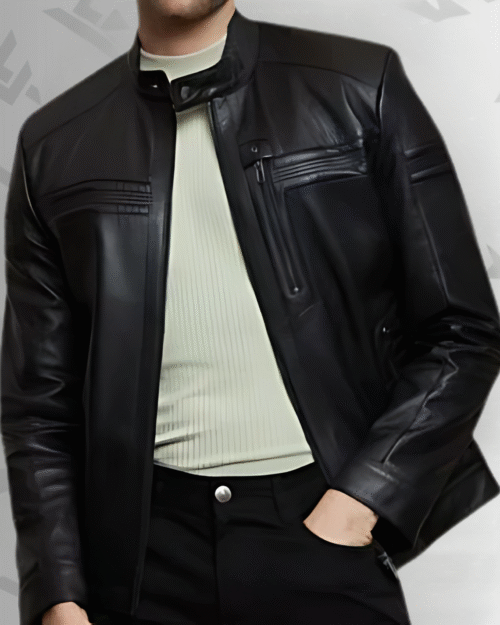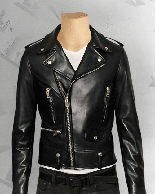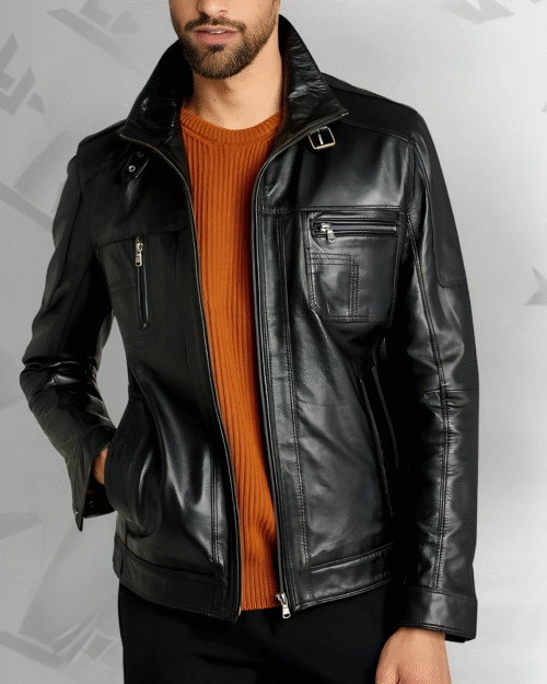 Rockafella | Men’s Black Sheepskin Leather Biker Jacket