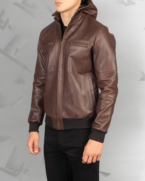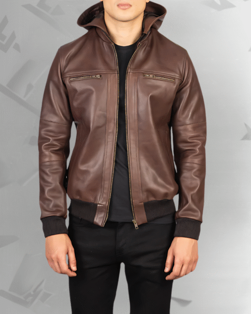 Bouncer Biz Brown Leather Bomber Jacket