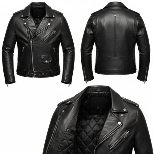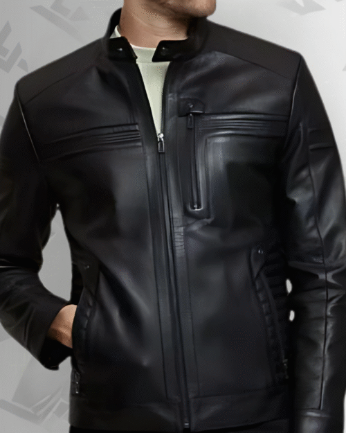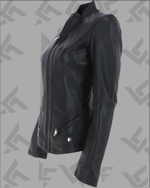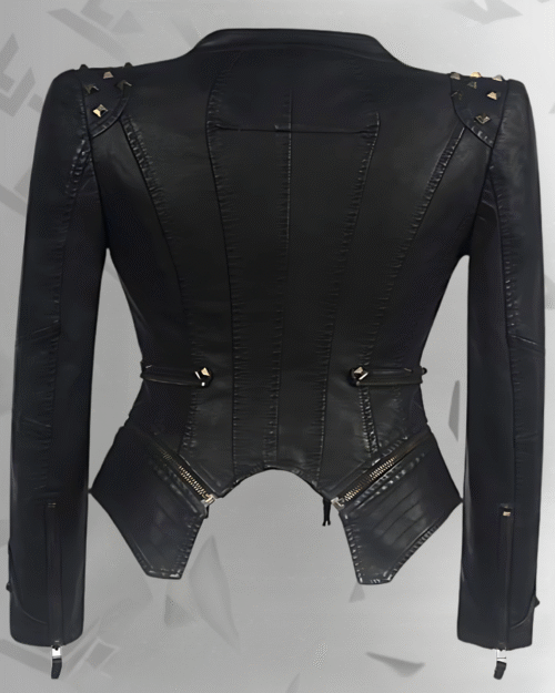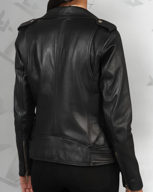 Women’s black motorcycle jacket with zipper details